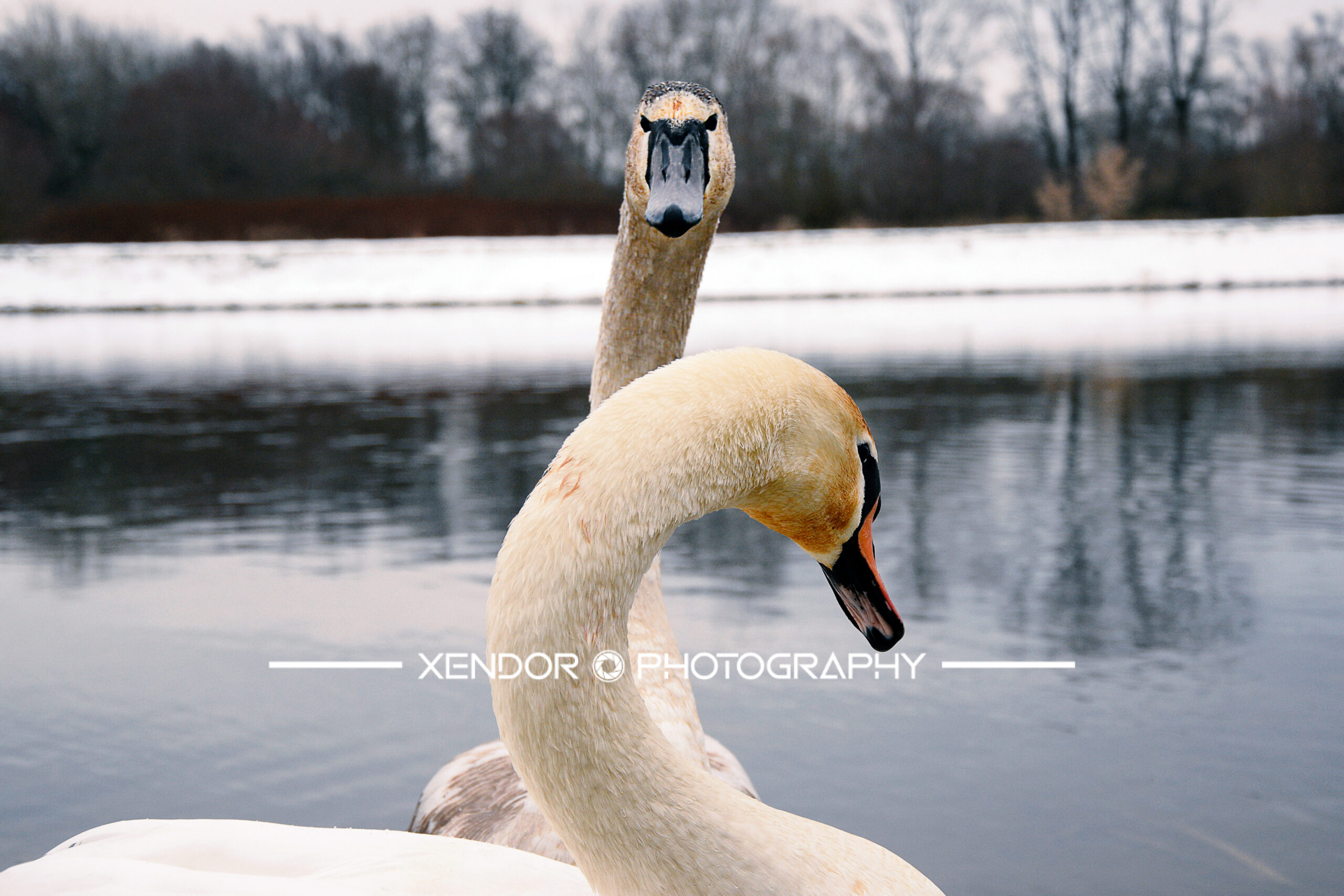 Młody i dorosły łabędź